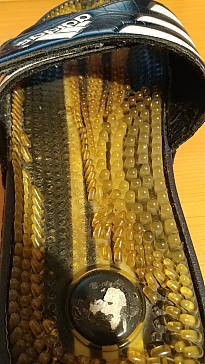А вот минус в них всё же есть. Несмотря на все заявления о том, что благодаря специальному материалу в них не потеют ноги, у меня с ними были проблемы. При активной ходьбе начинается сущий кошмар и ноги от пота начинают в них скользить и скрипеть. Поэтому максимум выйти на полчасика, либо за рулем, либо в бассейне... В течение целого дня я бы их носить не рискнул