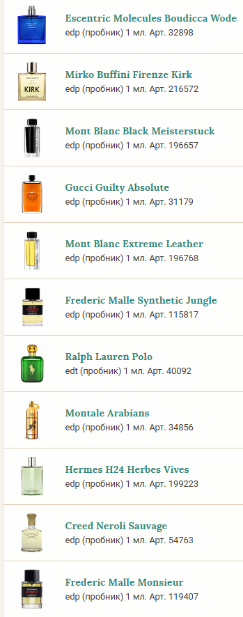 >>1880847 да не, у нас и зя есть, и местные другие сетевики. Я говорю именно про онлайн-магазины типа рандеву и аллюра, где можно без ебанутой наценки купить. А еще там выбор больше и отливанты есть