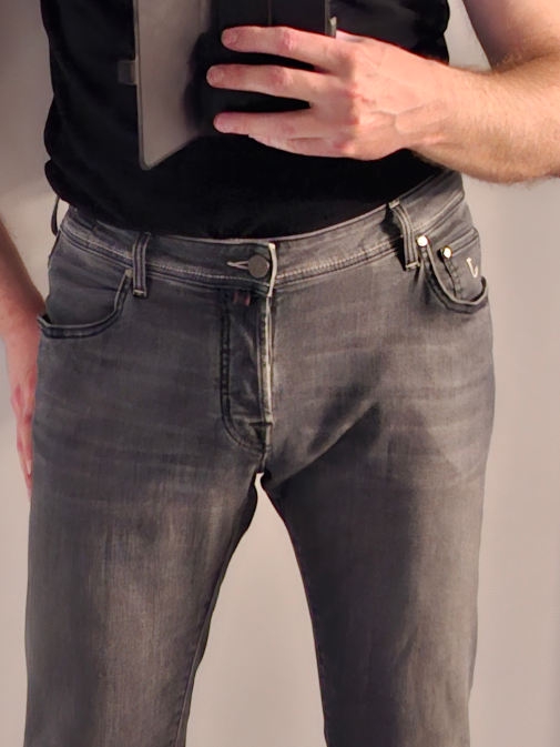 Меня бесит то, что ткань топорщится по внутреннему шву штанины, там, где должны быть приводящие мышцы бедра, хоть это и слим фит модель. На фото из-за камеры и освещения проблема чрезмерно подчёркнута; тем не менее, я это вижу и меня это раздражает. Для тёлок такая посадка, ясное дело, была бы неприемлема; а стоит ли мне заморачиваться насчет этого?
