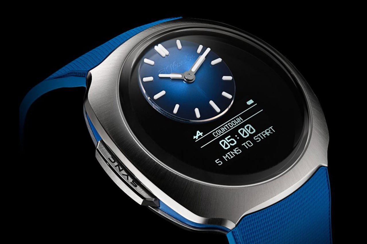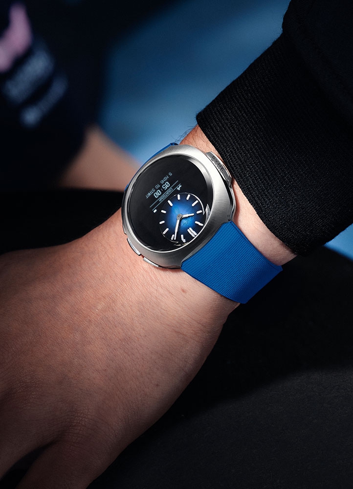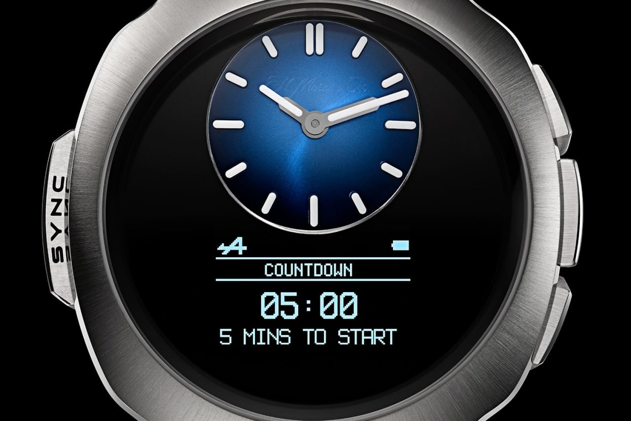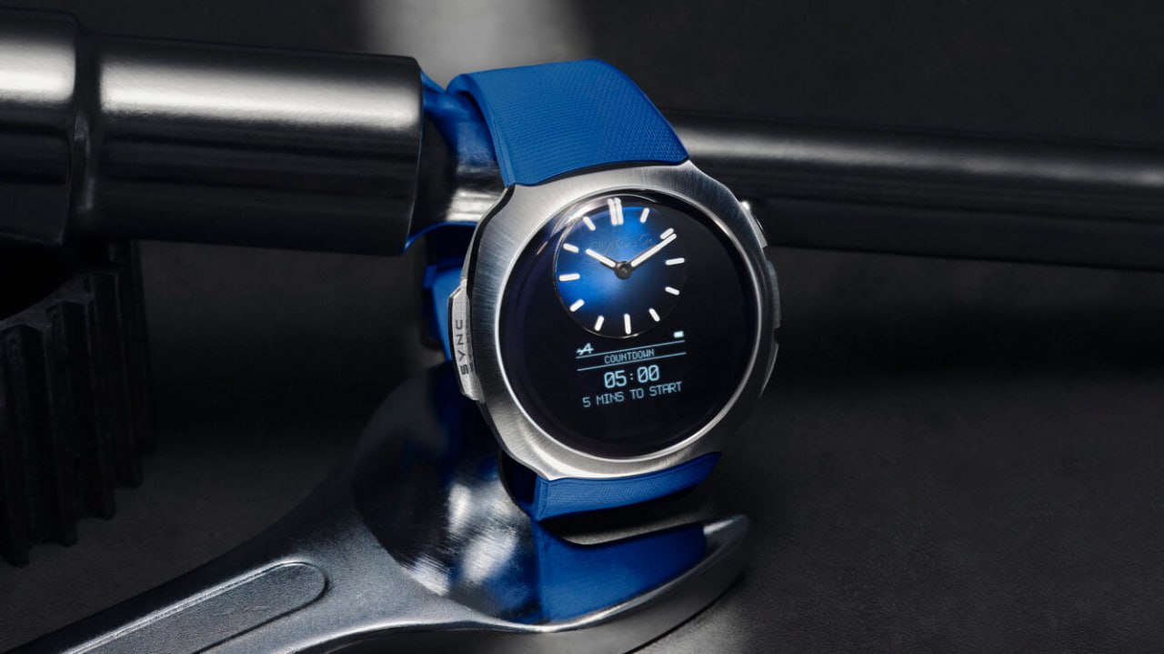 Смарт-часы от H. Moser & Cie.! Компания представила часы Streamliner Alpine Drivers Edition и Streamliner Alpine Mechanics Edition в сотрудничестве с Alpine Motorsports. Вторая модель работает при помощи Calibre DI0, разработанном со швейцарской SEQUENT. Цифровой модуль 32,5 х 33,9 х 6,9 мм предлагает целый набор функций: сплит-хронограф, вечный календарь, GMT, а также обратный отсчетом до гоночных выходных. Основное время - и на цифровом дисплее на "6" и на традиционном циферблате Funky Blue fumé. Корпус 42,6 × 14,4 мм - из стали, водонепроницаемость 120 м.