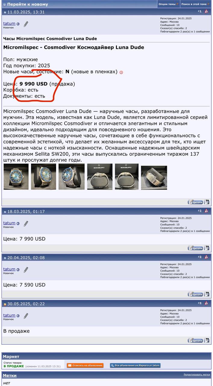 >>1898416 >Тем более здесь не залетные, а все свои часаны, должны понимать, что именно покупают, т.е. на несознательность не спишешь. Тот же жалкий залетел с часами