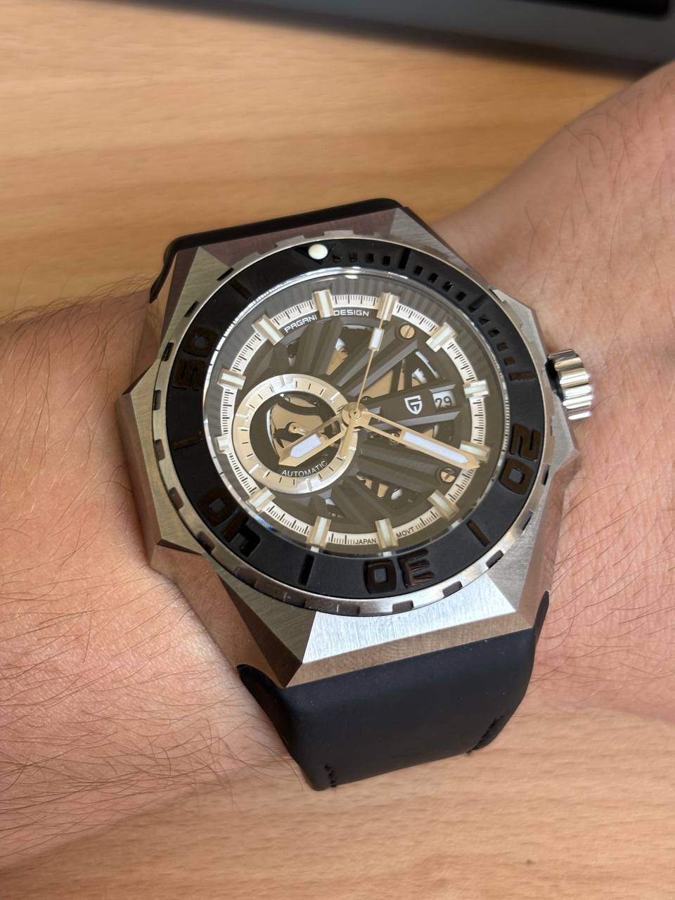 >>1897927 Никогда не думал, что куплю китайские часы. И вот сегодня пришëл такой хомажик. Давно хотел попробовать что-то в таком форм-факторе. Пллюс vh31 (механика на nh-35 и обычный кварц мне совсем неинтересны). Первые впечатления: Заявленный синий цвет цифера скорее матово-серый с синим оттенком. Стекло - изогнутый сапфир, довольно сильно бликует, но читаемость приемлемая. Корпус разочаровал. Ни одной острой грани. Всë замылено. При этом сплошная полировка. Ремень, хоть и пахнет кожей, думаю долго не протянет. А вот бакля, хоть и кажется от других часов, сделана интересно. Она имеет шлифованную поверхность с чëткими гранями. По форме, наверное, подошла бы больше к РАМ. При рассмотрение при 3х кратном увеличение, претензий к циферу не возникло. Печать точная. Мусора не замечено. А стрелки вообще порадовали. Хорошо и ровно отполированы. Заусенцев не видно. Частота движения секунды напоминает низкочастотную механику. Люм очень слабый, непонятно зачем он здесь. Когда заказывал, думал, если будет совсем всë плохо, то отдам кому нибудь. Пока оставлю. 4000 не жалко. P.S. На руку больше 17см, без примерки брать не рекомендую. На мои 16,5 ,вроде, норм.