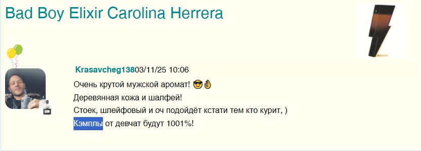 Просто вот как ты собрался кэмплы от девчат собирать? Я обратил внимание, что мне делают кэмплы, когда на мне что то ебашащее, из последнего - ловил на кобальтессу страпонессу вчера. Но он ебет просто часов 5-6, т.е. он не супер стойкий, но шлейф пиздец. И люди такое замечают. А на всякий кал типа люкс с нижней полки со стойкостью 1 час невозможно получить комплимент. Да, конечно можно отлить и как крысеныш пшикаться, пока никто не видит, но так это расход то какой ебать, можно взять пару флаконов чего то нормального
