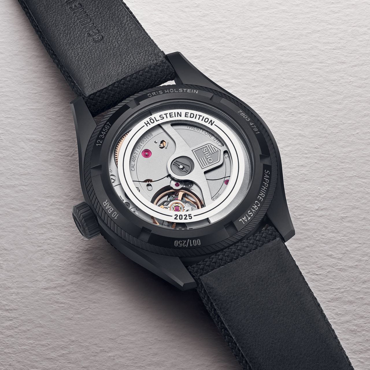 1 июня - день рождения Oris, который компания отмечает выпуском особых Hölstein Edition. Модель этого года базируется на часах ProPilot в черном матовом корпусе с DLC-покрытием с лимитом выпуска 250 экземпляров. Где же фирменный медвежонок? Он становится заметен на циферблате часов Oris ProPilot Hölstein Edition 2025 в темноте.