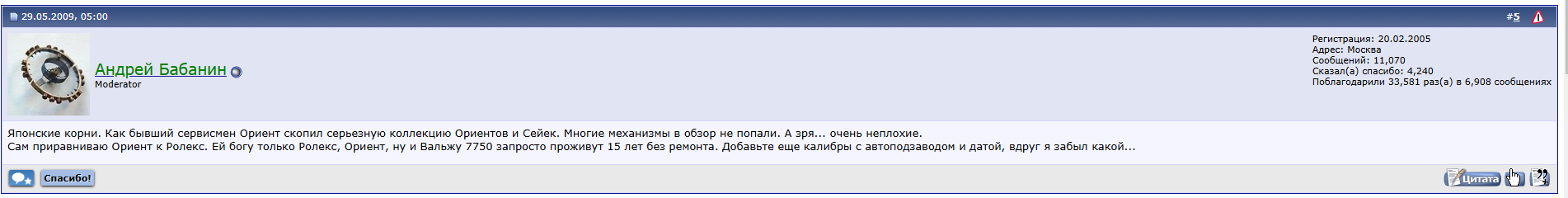 >>1900266 >Значит он по твоим же критериям надёжнее. Ты забываешь про общее качество сборки, качество деталей и качество обработки. >Как именно он работает? Как надо. В допуски ходит и заебись, зачем трогать то, что не сломано? >Это даже близко не пруф и он там четко написал про ремонт. Ремонт и обслуга в контексте сказанного это одно и то же. Строго говоря, без ремонта 15, а то и 20 лет может обходиться любой механизм, если его обслуживать, но зачем тогда он выделяет конкретно старые ролексы, ориенты и вальжу? Может потому, что ты пытаешься придать слову "ремонт" в этом контексте иное значение? >Твоим безпруфным фантазиям Мне очень нравится, как у тебя горит жопа от того факта, что 469 похую мороз, и он спокойно без обращений в мастерскую отпахивает десятилетиями. Ты пока что ничего не смог этому противопоставить, только подтвердив дополнительным отзывом хуя с воч.сру, у которого жёнушка носит ориенты без обслуги, ну и зачем-то пытаешься проход в совок сделать, но получается так себе. >Почему ты копротивляешься, чит 2609 надежнее ориента? Так ты не привёл этому доказательств, зато опровержений своему выпуку принёс достаточно - есть просчёты в конструкции, а также общие жалобы по качеству материалов и обработки. Жалоб на 469 мех ты так и не принёс, разве что замечание
