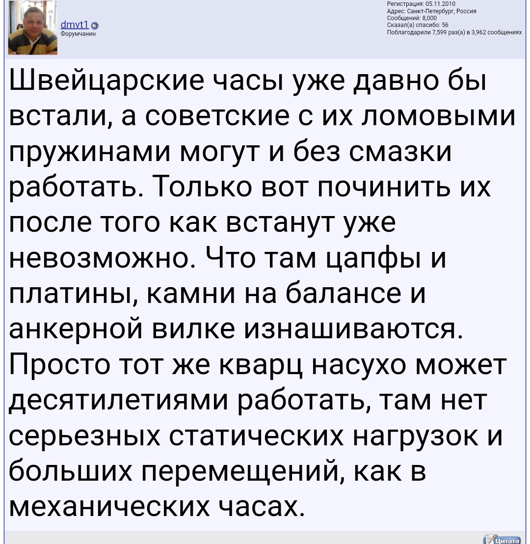 >>1900031 >Похуй мне на часовщиков. Похуй на факты, ясно >>1900031 >Понятно что им надо показать как пострашнее - иначе денежки не принесут Ну а у тебя есть иная статистика, видео жидкой смазки через 15 лет работы, идеальные шестерни в необслуживаемых механизмах? >>1900031 >Вот мои конкретно мои часы 15 лет ходили ровно в паспорт, без реппассажей и прочей хуеты Это всего лишь твои слова, не более. Даже если им поверить, то это единичный случай с часами в неизвестном состоянии. Может ты тут вообще спецом такую инфу распространяешь, чтобы у людей часы ломались? Пруфов у тебя ноль