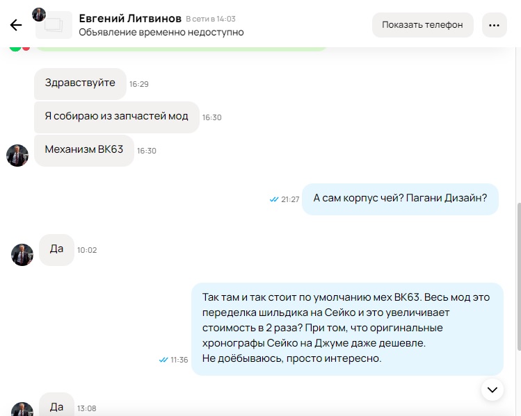Что такое Сейко мод? Дохуя на авито всякого говна, типа СЕЙКО МОД, и стоит такое как просто Сейко на Джуме, ну, плюс-минус. Я чёт по дурости, незнанию, наивности и неопытности подумал что это просто часы Сейко, но с небольшим пердолингом, типа, кастомный безель, стрелки меняют, и т.д. Ну как я лет 6-8 назад чутка проапгрейдил свой Восток Амфибию - поменял безель и вставил прозрачную заднюю крышку. Но сам корпус, механизм остался от Востока, так, чисто косметический пердолинг. И я реально захотел этот Сейко мод, типа, а хули бы и нет. Но когда начал копать тему, знатно так охуел - оказывается Сейко-мод это просто, блядь, подделка. Не модернизация (как следовало бы из названия), не кастомизация, это просто какие-то Васяны делают подделку. Берут на Алиэкспрессе какой-нибудь Стилдайв или Пагани Дизайн тысяч за 5-6-7, там же заказывают циферблат за косарь с логотипом Сейко, ставят на Стилдайв - всё, блядь, СЕЙКО-МОД. Продают на Авито за 15-20-25 тысяч. Я ебу, я такой наглости даже и не ожидал, это ж просто подделка, подделка, блядь, под Сейку. Причём, как я понимаю, таким же пердолингом занимаются и за рубежом, но если там в Китае заказывают отдельно запчасти и сами собирают часы, то наши уёбки тупо хуячат цифер от Сейко в Стилдайв. Это весь мод.