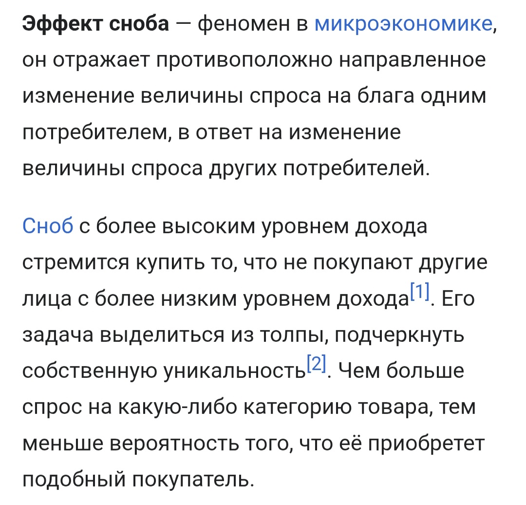 >>1902399 >>1902428 >>1902403 Да хуйня это все. В том плане, что есть вещи, такие как духи, вино, еще какая-то подобная хуита. Вот человек скажем не разбирающий в вине, например я такой, ну как будет покупать вино? Ну вот за это слышал, что пиздатое, парфюм такаяже хуйня большинству тупо похуй, услышали, что пиздатое понюхали, ну вроде ничего, ну беру. Вот вернувшись к тому же вину, есть у меня кореша кто вином типа увлекается, говорят, вот тут подают ахуенное, ты должен попробовать, я наливаю себе ну вино и вино, только вяжет сильнее обычного, но надо будет купить вино, наверное вспомню что там за бытылка была. Потмоу, что мне тупо похуй на вино, и разбираться смысла нет.
