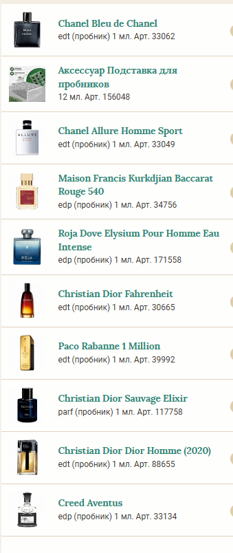 Согласен Просто одно и то же гоняют по 100500 кругу, всегда эти лемаль ле парфамы, стронгеры, вонтеды, эрос флейм, ysl milf, имага и прочее. Частенько сюда залетает еще Y EDP, Le beau le parfum, Торино 21, цитрон буазе и прочее.
