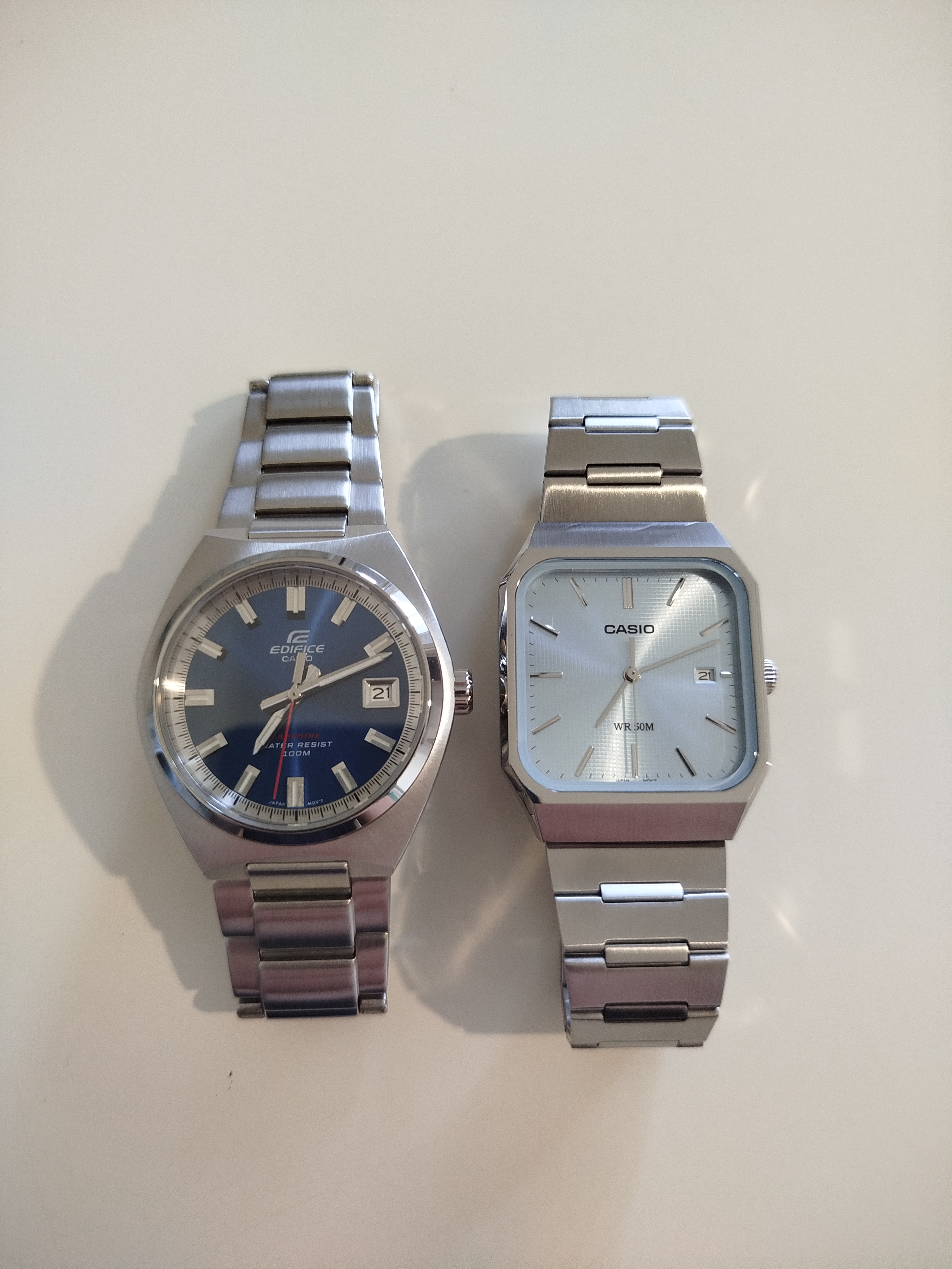 Ехал сегодня в автобусике попивая компотик, напротив сидела симпатичная девушка-блондиночка, татушечки, пирсинг и Касио пикрил на запястье. Погуглил модель, обнаружил прекрасные часы, с точным и удобочитаемым временем, с батарейкой на 7 лет, стоят всего лишь 2000р. примерно. Вот какого хуя ещё надо? Сплошная красота, удобство и никакого пафоса.