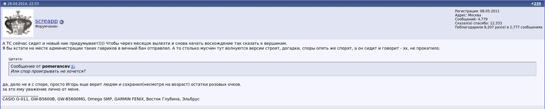 >>1911775 >сам ТС мутным оказался. Иван, хоть и молод, но - судя по общению на форуме - адекватный молодой человек, вежливый, в часах разбирается, в общении приятен. Да и работает в ОЧЕНЬ серьезном месте, я бы не рискнул на такой должности носить фейк. Да и не попадают случайные люди туда.