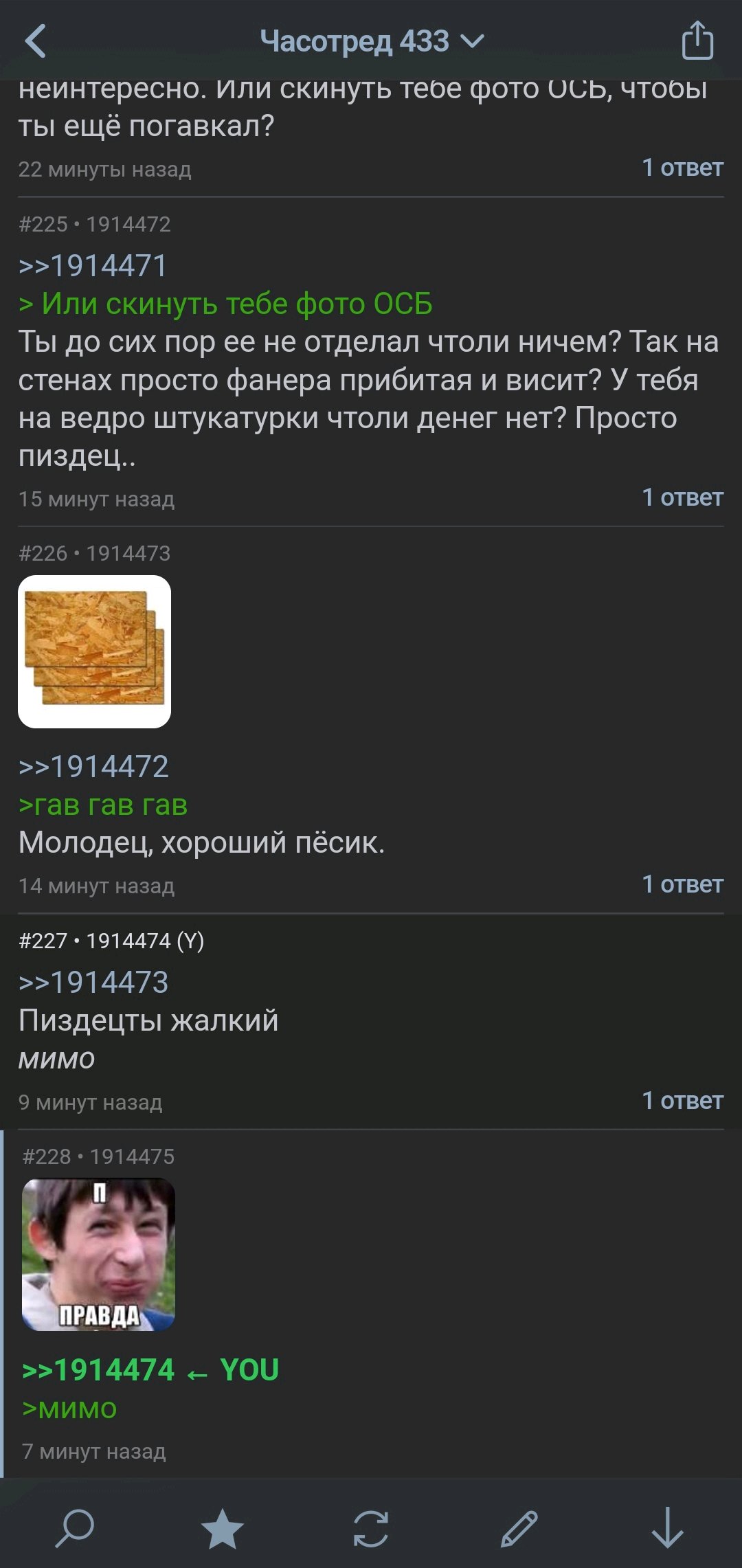 >>1914471 > Или скинуть тебе фото ОСБ Ты до сих пор ее не отделал чтоли ничем? Так на стенах просто фанера прибитая и висит? У тебя на ведро штукатурки чтоли денег нет? Просто пиздец..