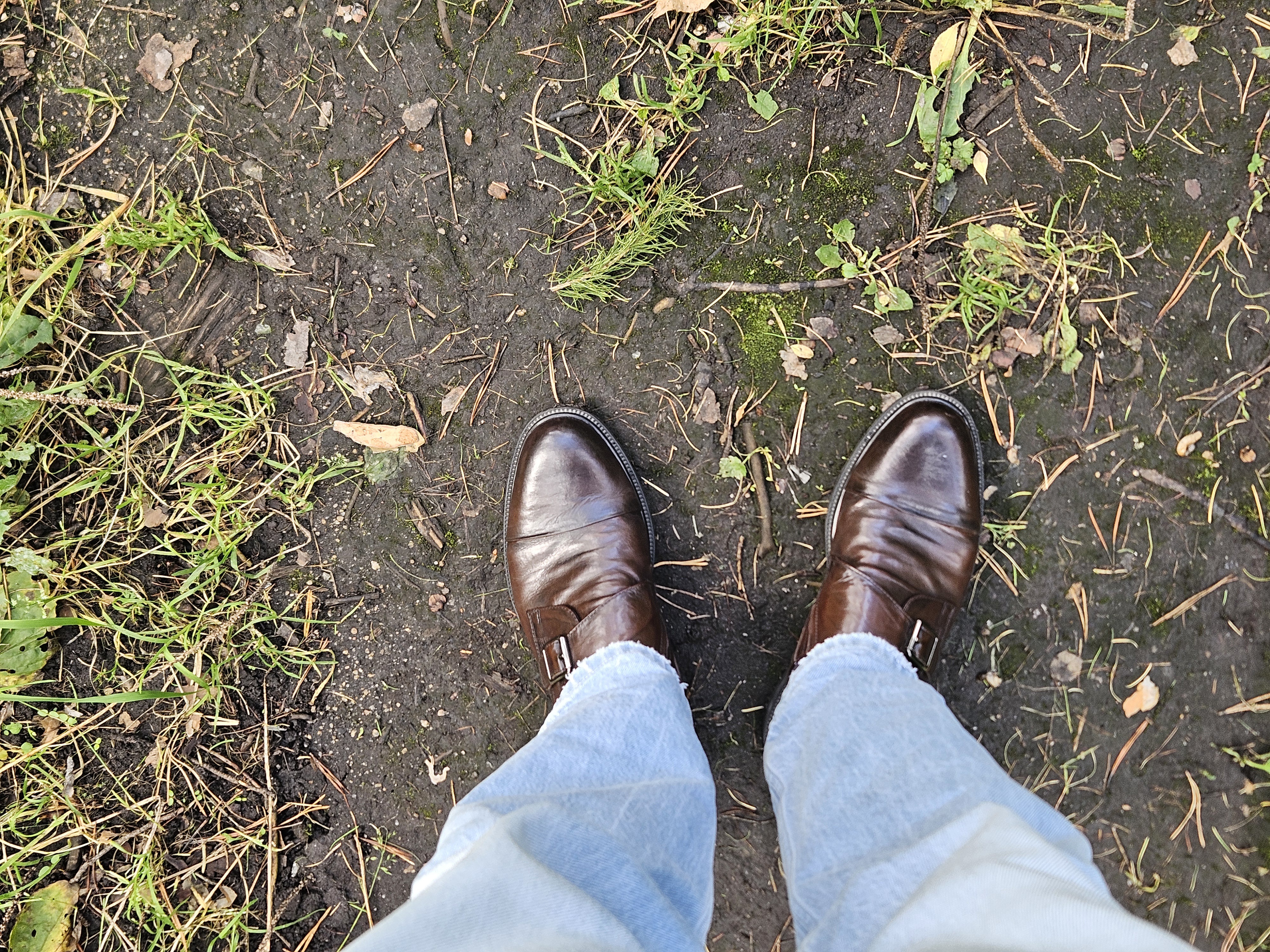 Сейчас смотрю на них и думаю как в них на улицу выходить - какие-то блять клоунские ботинки, не с зеркальным блеском, но неестественным для черной кожаной обуви. Буду наверное белой вороной, потому что мало того что сейчас круглый год в кроссовках ходят, так еще в последние годы не принято за обувью следить