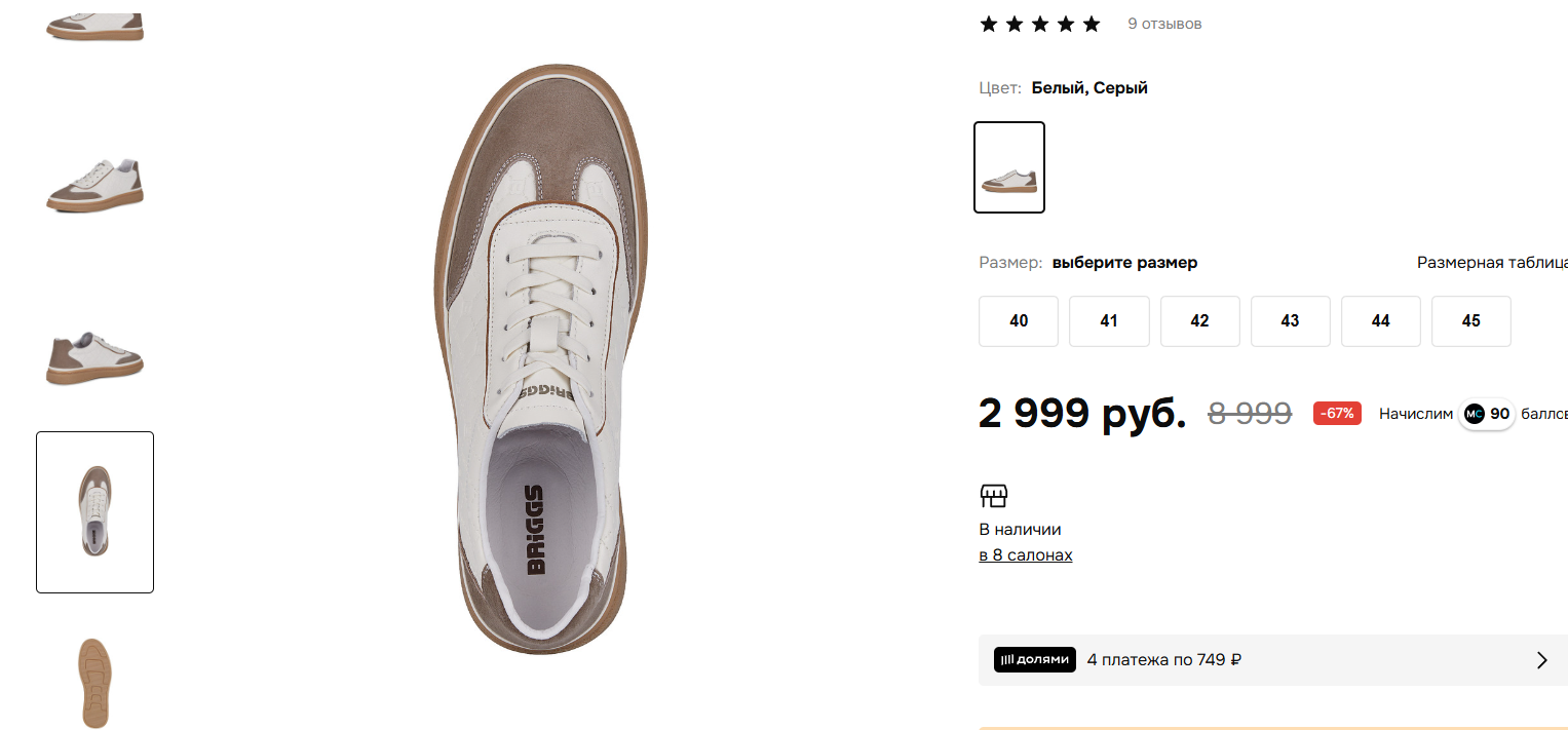 >>1921802 >есть ли у кого из производителей обувь как бы неяркого кремового или даже чуть темнее цветов Да у всех брендов есть. Бежевый, или так называемый "слоновая кость" везде и всюду.