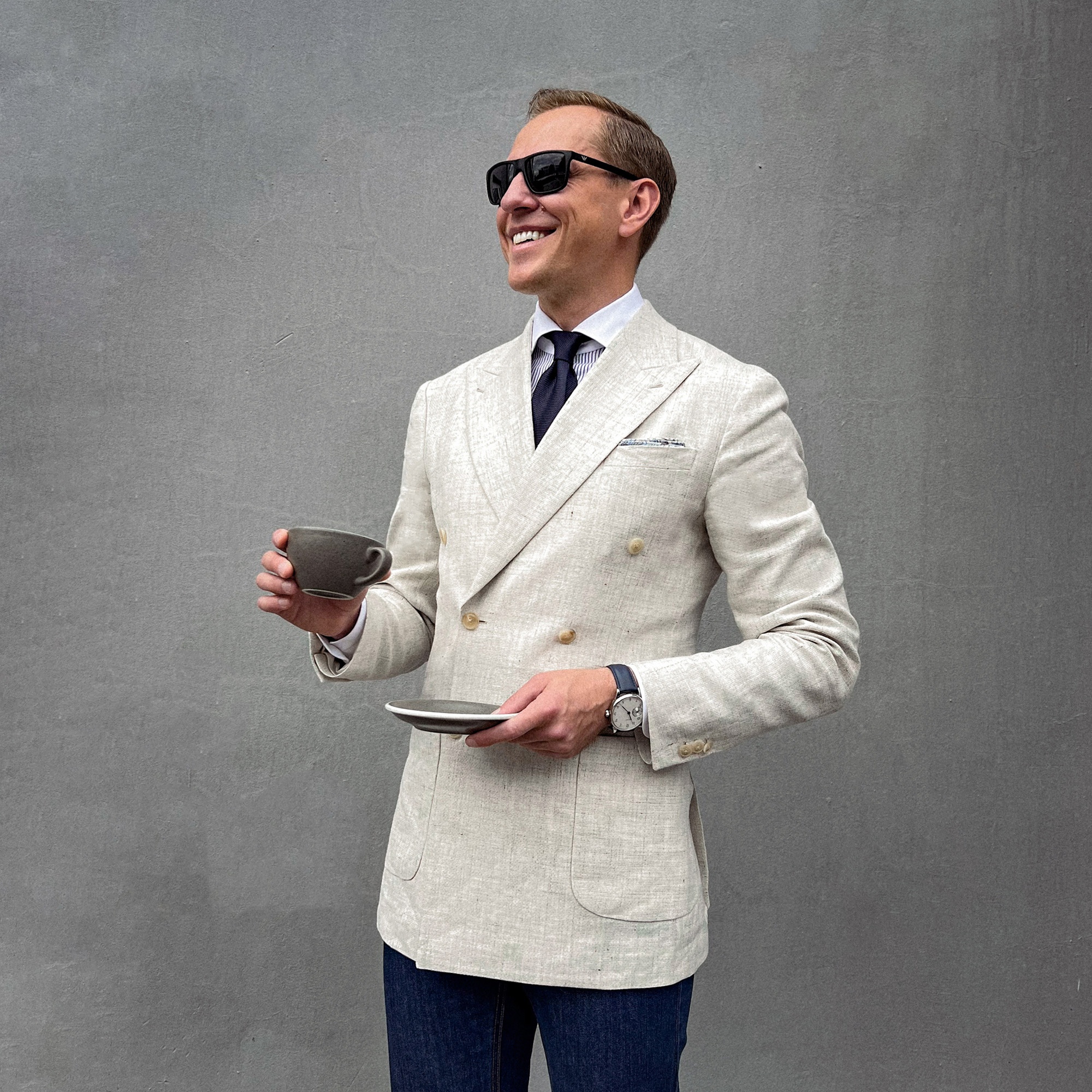 Чет я уже забыл, где срались про джинсы под пиджак и искать лень, поэтому будет здесь. Вот я собрал себе лук по референсу с пинтереста буквально pocketsquare тоже едет, чтобы ходить в школу в места, куда не следует ходить в черноебском авангарде. У вас есть уникальная возможность выссказаться, почему я должен поменять джинсы на шорты что бы то ни было.