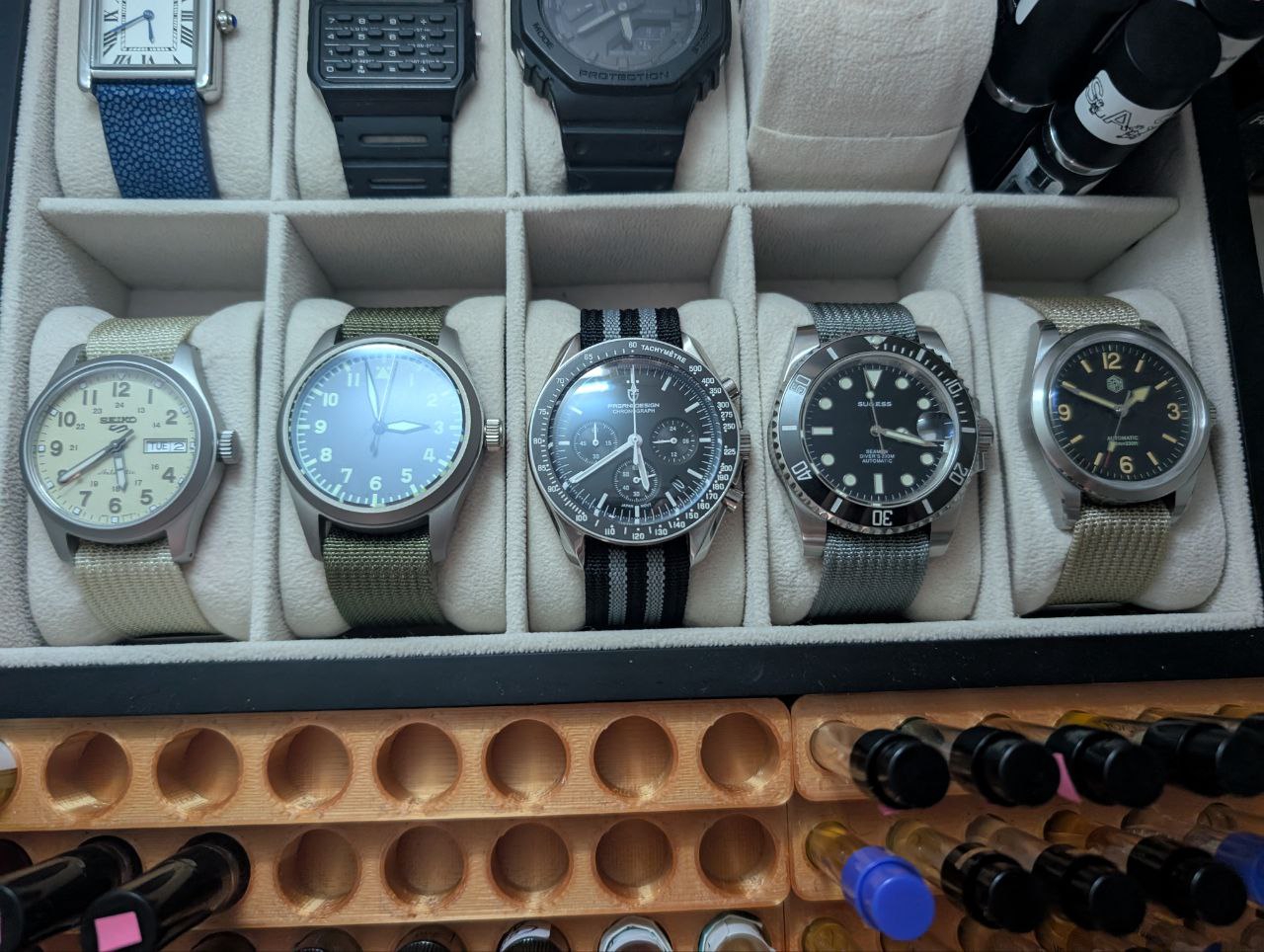 >>1921512 >Куча дешманских часов >Куча пробников Фото прям кричит: я нищий лузер неудачник который не может позволить себе настоящие часы за 5к баксов и полноразмерный парфюм за 500 баксов