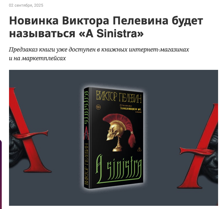 >>1922140 Ну, Пелевин достаточно интересный писатель, но только потому, что все остальные его современники ещё большее говно. Но вот последние его книги про Трансгуманизм не выделяются даже на фоне остальных современников. Была некая надежда на "Путешествие в Элевсин", где он отошёл от заебавшей всех японщины и полез в Древний Рим, но даже эту низенькую планочку он не удержал. Кстати, сентябрь. Скоро, наверное, выйдет очередное книжко Пелёвина.