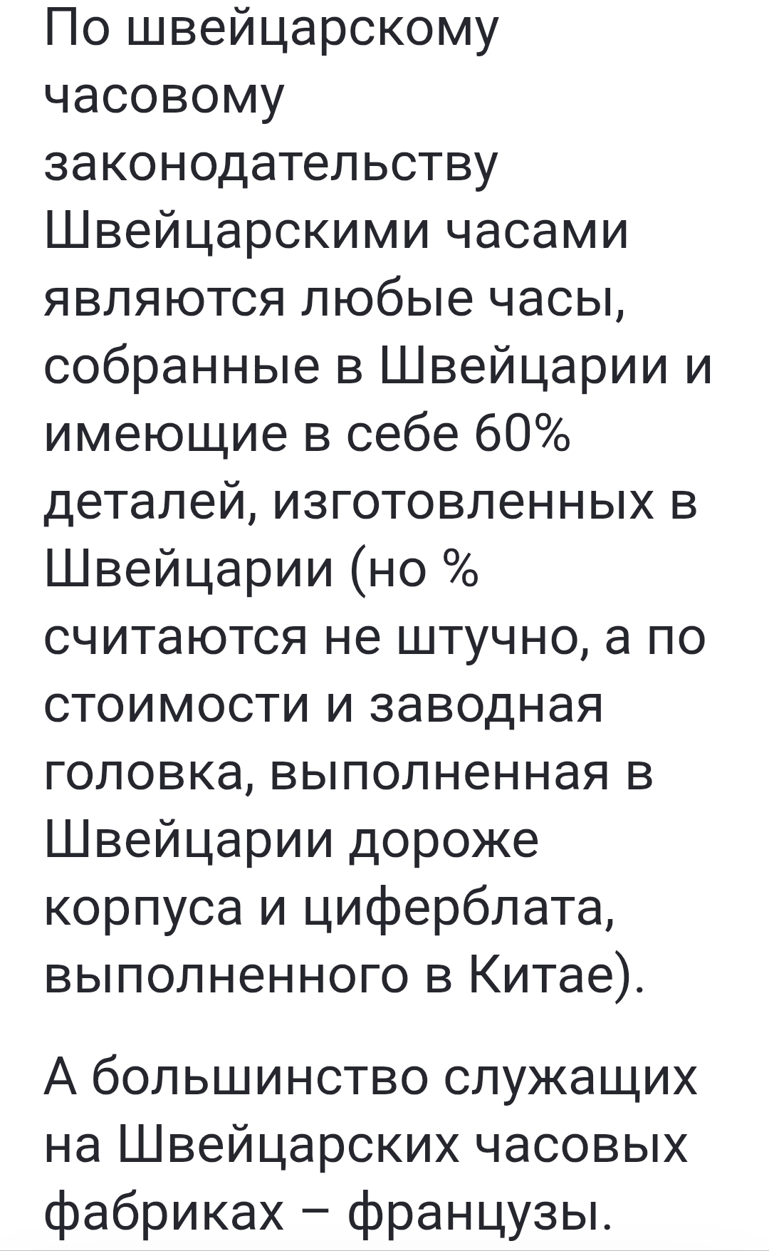 Кстати. Закон регулирует производство ходиков. То есть производитель ходиков, если закупит пружинку у швейцарова юрлица, несет затраты в швейцаровой налоговой юрисдикции, для производителя ходиков пружинка на 100% swiss made. А где производитель пружинки эту самую пружинку взял, купил или сам сделал - то закон не регулирует. Производитель пружинок не делает ходики.
