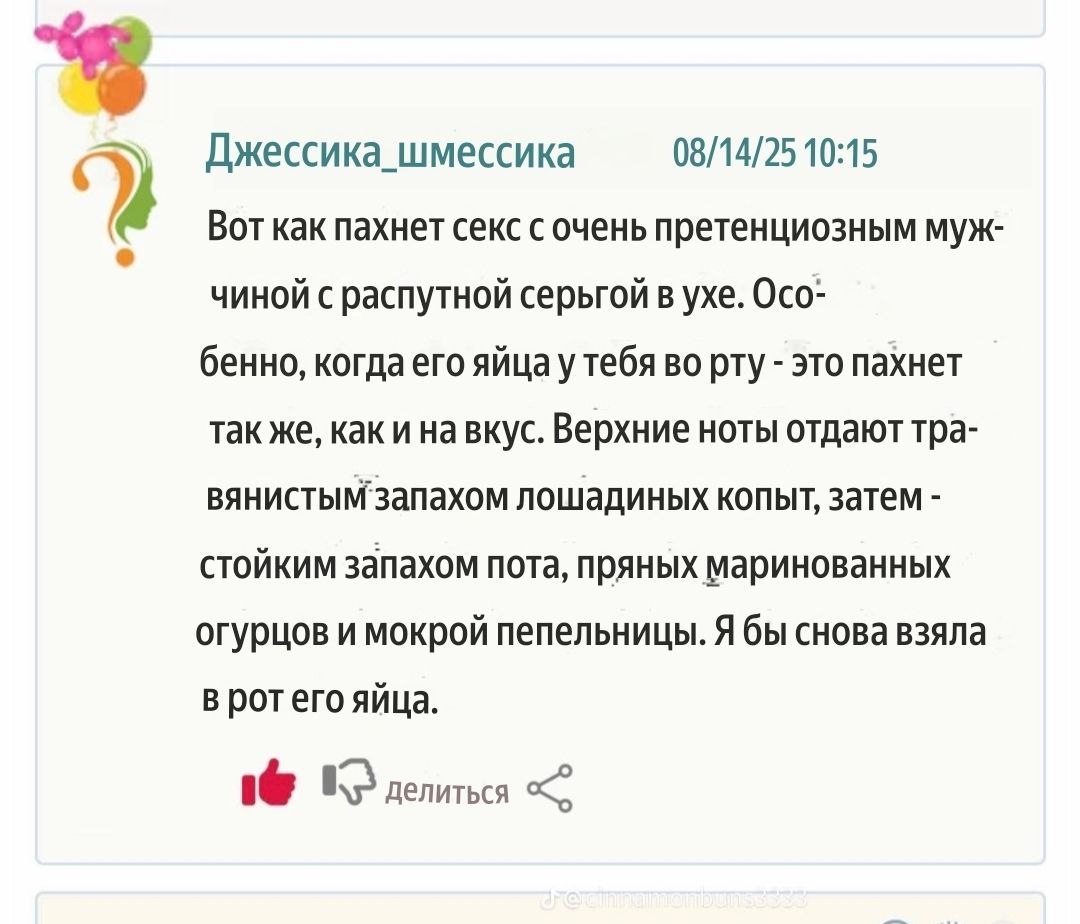 >>1923178 >Ну и где эталонная база знанийтм где есть инфа по всем ароматам типа ты пшикнул и сколько длиться должно и прочие проверки, че в шапке не висит. Не нужна. Твёрдо и чётко. Уже было, было юзлесс говно. >Вы вообще уверены что вы не паль купили? Да. >Мне кажется только в официальном магазине за рубежом можно быть уверенным. Если сильно трястись, можно вообще в это дело не лезть. >>1923184 >Данное мероприятие должно быть коллегиальным, а не основываться на мнении какого-то безносого анона. Наконец-то, моё любимое развлечение - смотреть как ньюфаги в очередной раз решают запилить гайд, и как они в очередной раз обосрутся с этим. Это дело не нужно делать, как минимум потому, что это будет необъективная и ангажированная хуета, не дающая никакого адекватного описания парфюмерии. Прошлый гайд был именно таким, плюс он ещё был куцым, ведь автор гайда предпочитал просто забрасывать определённые бренды говном. А если к этому делу подключится несколько анонов, то получится как в басне про лебедя, рака и щуку. Плюс не забывай - мы в 2025 живём, у нас даже сраную Шанель затестить без покупки проблематично. А кому интересно тратить огромные бабки на отливанты?