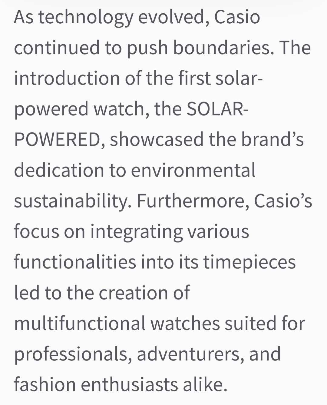 >>1927100 Мань, Касио это один из крупнейших часовых брендов с кучей инноваций. Он по вкладу в часовые технологии и часовой дизайн выше 99 процентов швейцарских брендов