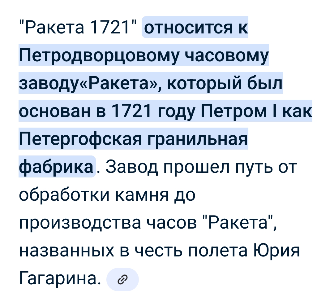 >>1929257 Ты дебил? Ракета рассказывает про завод по обработке камней, к которому никакого отношения не имеет, ставит у себя цифры 1721и считает своим основателем Петра 1.