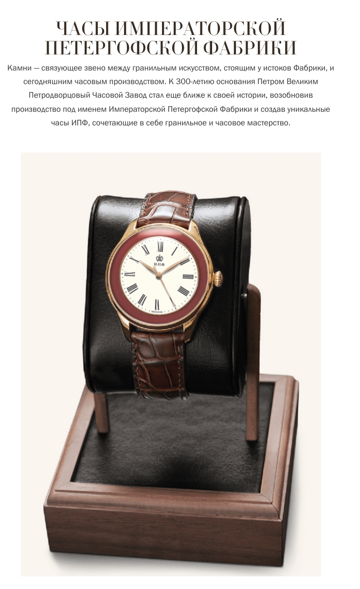 >>1929288 >Когда и какие камни она отрабатывала? Ты ебнутый что ли? Вот эти В Петергофе Петродворцовый часовой завод, также известный как "Ракета", имеет историю, связанную с обработкой камня: изначально предприятие, основанное Петром I, было Петергофской гранильной фабрикой и занималось художественной обработкой цветного камня, а позже переориентировалось на производство рубиновых камней для часовых механизмов.