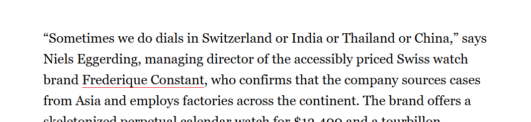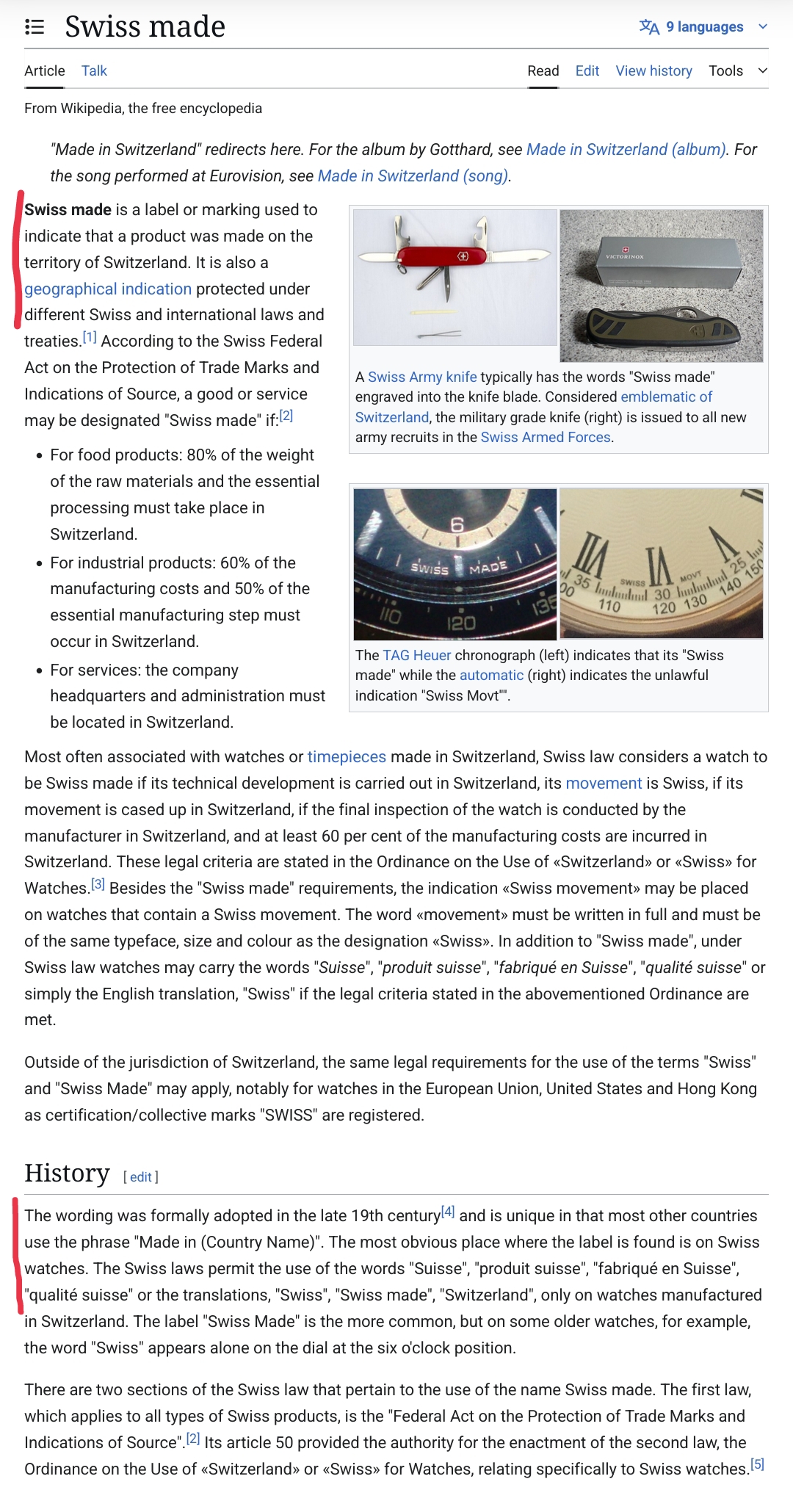 >>1929515 У тебя с английским проблема, швисс мейд это аналог мейд ин. Впрочем мейд ин это тоже такая же условная Маркировка. Но проблема в том как считают швисс мейд или мейд ин германи. Не по деталям, и не по тех процессу. В итоге массово выпускают продукт, в котором швиссодеталей может вообще не быть, а покупатель платит за работу офиса