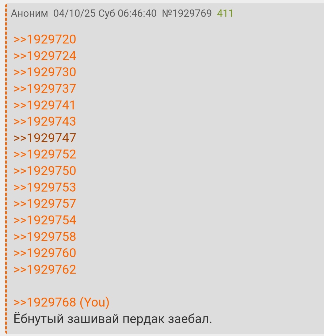 >>1929252 >Энурeзный зассыха Да Горемычный это. Просто этой осенью его шиза ролучила левел-ап и у него открылась новая ветка: Энурез. Хотя, судя по возрасту Горемыки, Энуреза стоит переименовать в Простатита.