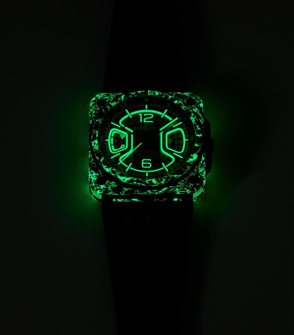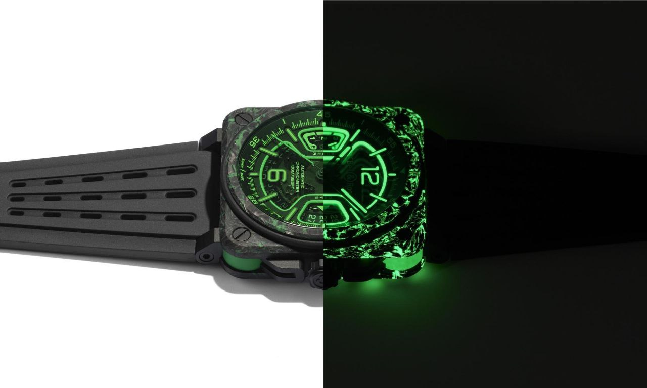 Кому осенью перестало хватать света - лимитка Bell & Ross BR-03 Night Vision. 250 экземпляров, продолжающие эсперименты марки со светом. Особенность тут - корпус из LUM-CAMO, композита, сочетающего углеродное волокно с люминесцентной смолой. Переднюю и заднюю пластины соединяют винты в защитных цилиндрах из фотолюминесцентного зеленого каучука. Посередине - титановая часть с черным DLC-покрытием. Размер корпуса - 41 x 13,3 мм, водонепроницаемость 100 м.