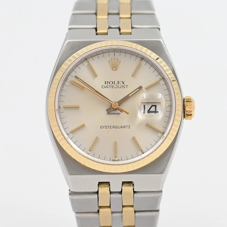 >>1934761 Нахуй ты разные часы из разных временных эпох тащишь? Ойстеркварц при любых обстоятельствах бушный будет, их сняли с производства 25 лет назад. Дэйтджасты в корпусе с интегрированным браслетом и того старше - их производили в 70-ых.