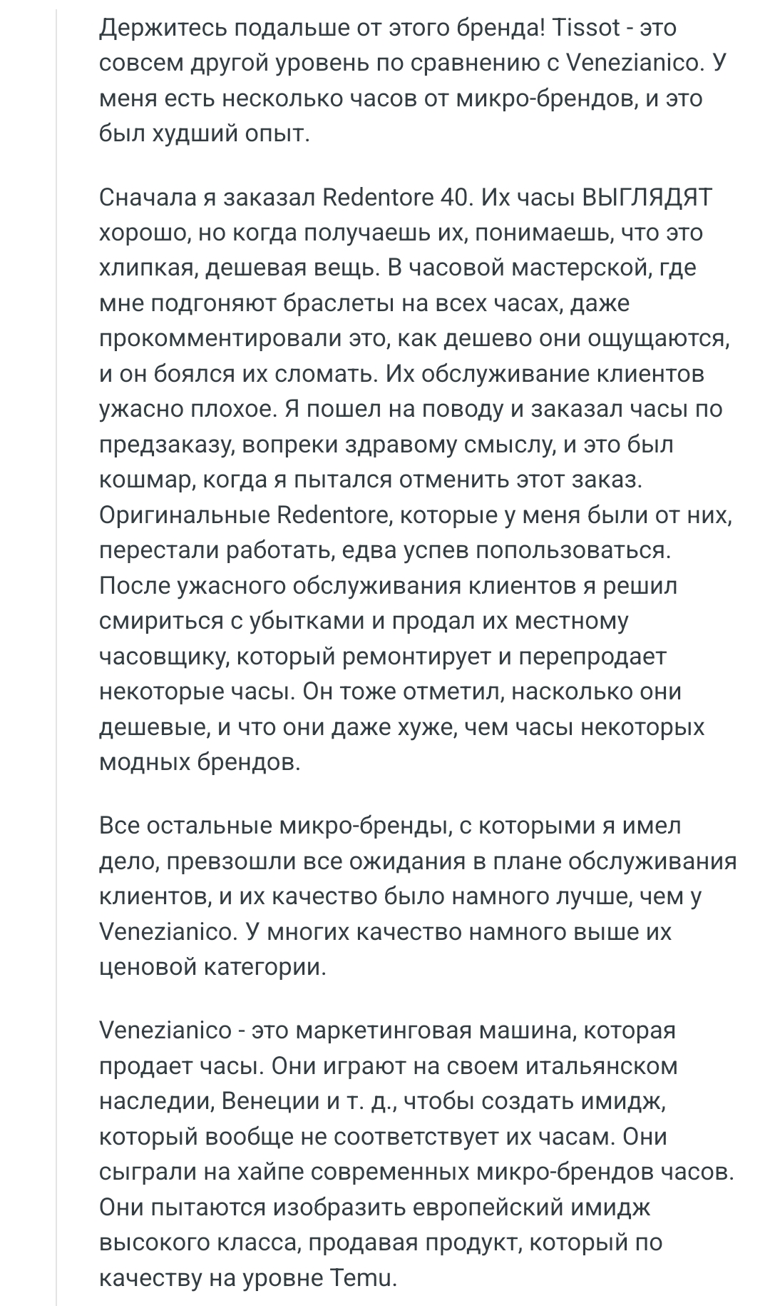>>1936028 Кошмар. Пытались в винтаж видно, но пропорции ужас. Шрифты недоработаны, безель огромный, все какое то странное. Головка как от других часов. Тропик ремень дайверский тут зачем? Ужас. У кого глаз намётан, сразу видно, что собирали из того что было на складе и вообще не думая. Такое даже бесплатно носить на себе бы не стал, а уж с довольно выверенными Тиссо теми и сравнивать моветон. Глупенький ты и бедный.