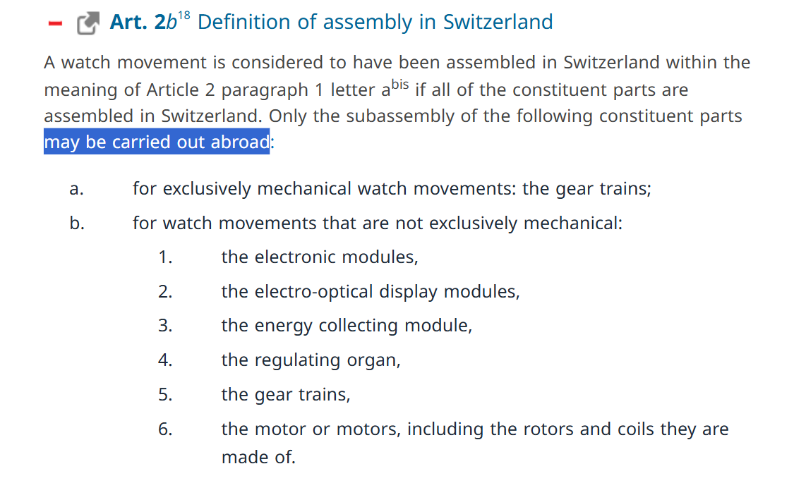 >>1935235 Так в этом и заключается смысл обозначения "сделано в Швейцарии". Часы, собранные на швейцарском заводе, однозначно считаются сделанными в Швейцарии, даже если часть комплектующих для них сделаны в Индии, Китае или ещё где. По тому же принципу, по которому автомобиль BMW, собранный в Германии маркируется как "Сделано в Германии". Ролекс, например, сам льёт металл для своих часов, но ты же и до этого доебёшься, скажешь они должны сами в Швейцарии добывать руду руками швейцаров, затем плавить на швейцарском комбинате и только тогда часы могут называться швейцарскими. Совсем одебилел в своей будке.