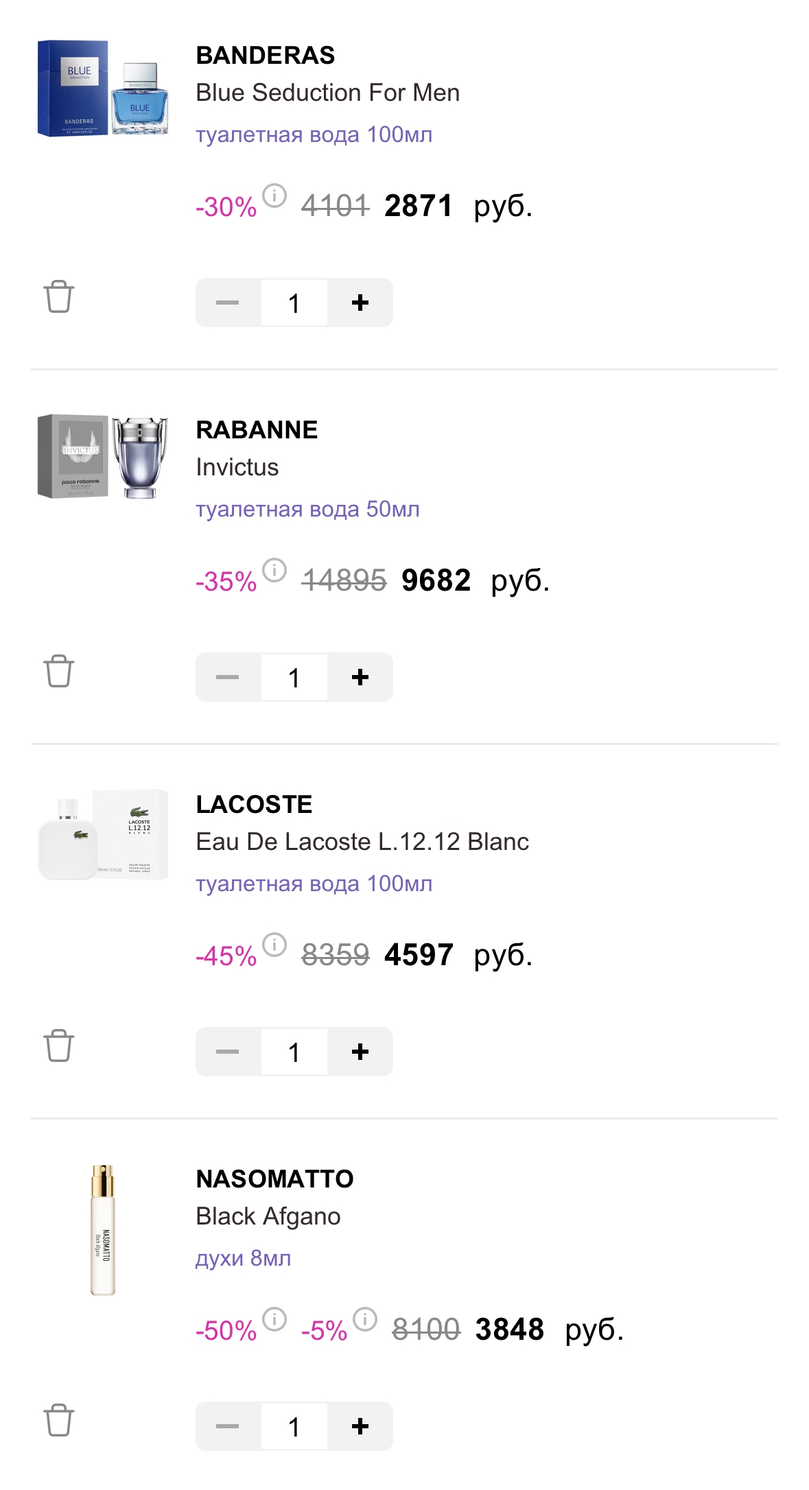 >>1938684 Ребят, скажите что-нибудь про Валентино, стоит брать? Там уже 2 осталось, самого годного Корала нет. Я видел тут комент, что типа химозная пучевская жижа, но этот комент украл постный вор. Отзывов на фраге мало (тоже видел про химозность пишут), в телегах почти не продают эту серию, спроса нет. Я посмотрел, действительно на мощностях Пуча этот бренд разливают, так походу из одной бочки вместе с Эрерой и Рабаном. Но с другой стороны, Пуч еще Ком де Гарсон делавет, а вот они уже годные. Просто цена выгодная, тестера на них от 6700 (+доставка, +покупка от 20к и 3 шт), а тут 6300 и бесплатно привезут, кэшбек еще можно залутать у т-банка 10%.