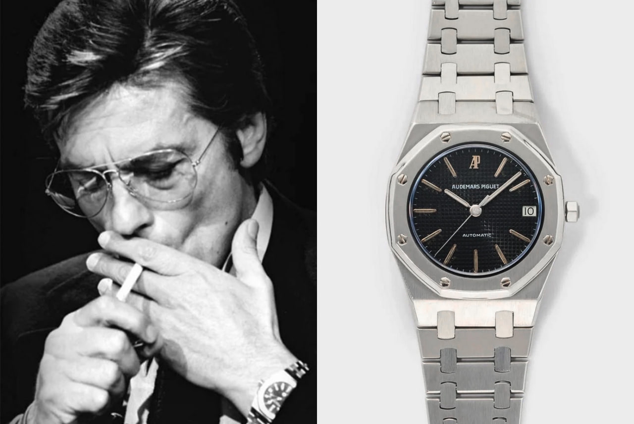 Ален Делон тоже носил на съёмках свои собственные часы, но в отличие от Бельмондо с его Ролексом – куда более стильные: Audemars Piguet Royal Oak “Jumbo”. В них он снялся в трёх фильмах: «Бумеранг» (1976), «Слово полицейского» (1985) и «Не будите спящего полицейского» (1988).