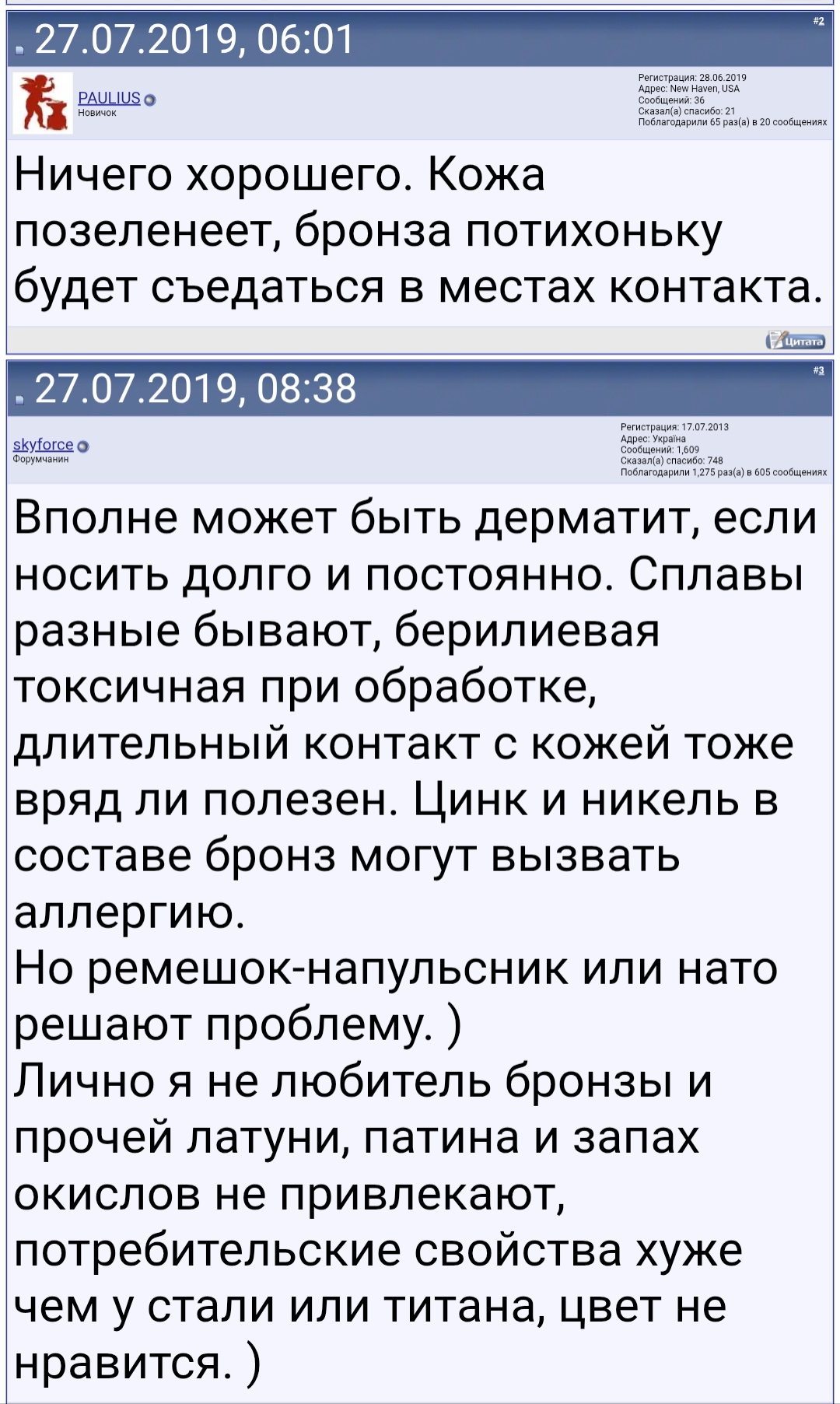 >>1946282 Пластик легче титана, пластик мягче металла особенно обрезиненный и потому приятнее на ощупь. Пластик теплее. Бронза редкостное говнище в носке, ты видимо теоретик. >>1946282 >Часы из металла вполне могут сохраниться и под 100 лет Нафиг тебе такие часы? Было бы ещё золото, было бы понятно. Причем пластиковый корпус если не расколется, то ещё и долговечнее, потому что не подвержен коррозии