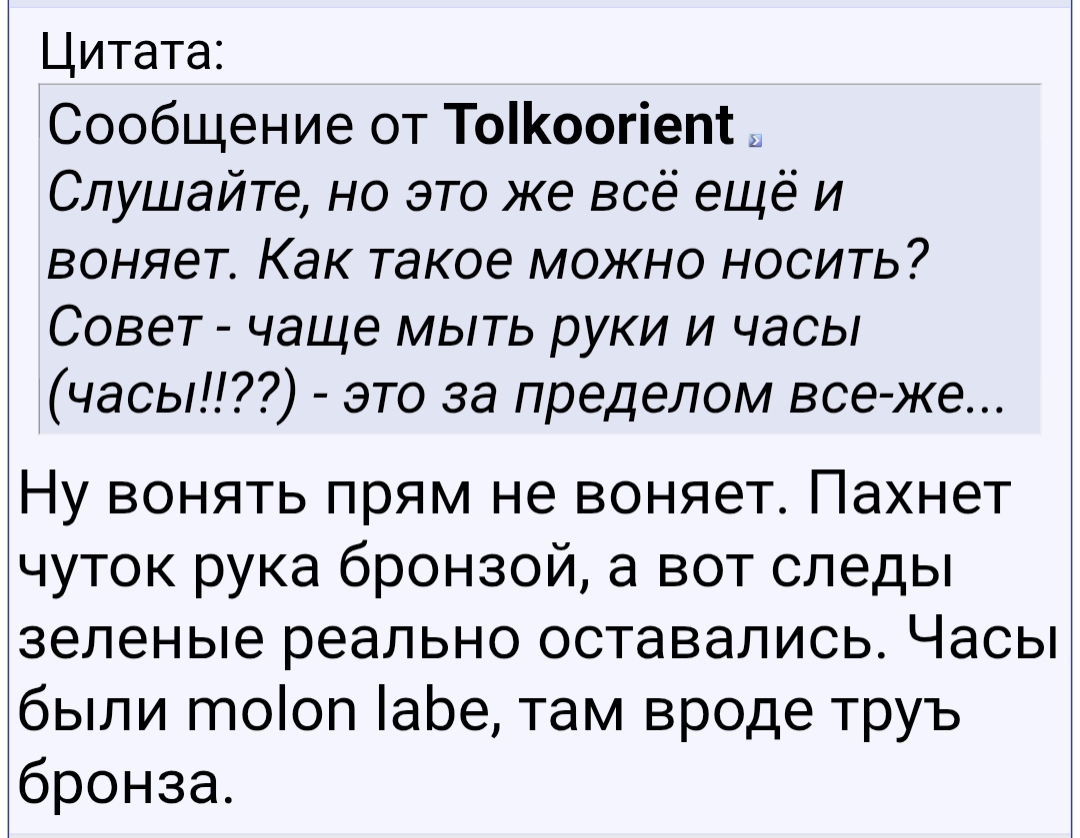 >>1945884 На удивление спрашивают иногда, я думал всем будет похуй. Но вот на бренды, цены, страны и масти часов всем действительно похуй, привлекает внимание скорее что-то нестандартное. Не в смысле дизели, чайкины и прочий китч (это то как раз максимально стандартно), а просто яркие. Меня чаще всего спрашивают за бирюзовые часы и часы в полном металле, оба дохуя блестящие но очень классические. Я сам недавно спрашивал челика с зелёной пресажей. Я конечно итак знал что это, просто разговор поддержать хотел. Но это тоже часики очень типичные для того кто хоть сделал попытку разобраться в часах, но выглядящие дорого-стильно для мимокрока.