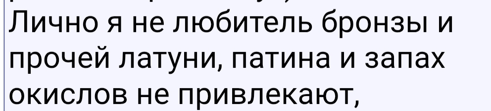 >>1946312 Значит есть ещё люди с обонянием. Сколько себя помню чувствовал вонь от латуни, потрогал на руках появляется. Может бронзоёбки это прокопчённое дымом быдло с поломанными носами...