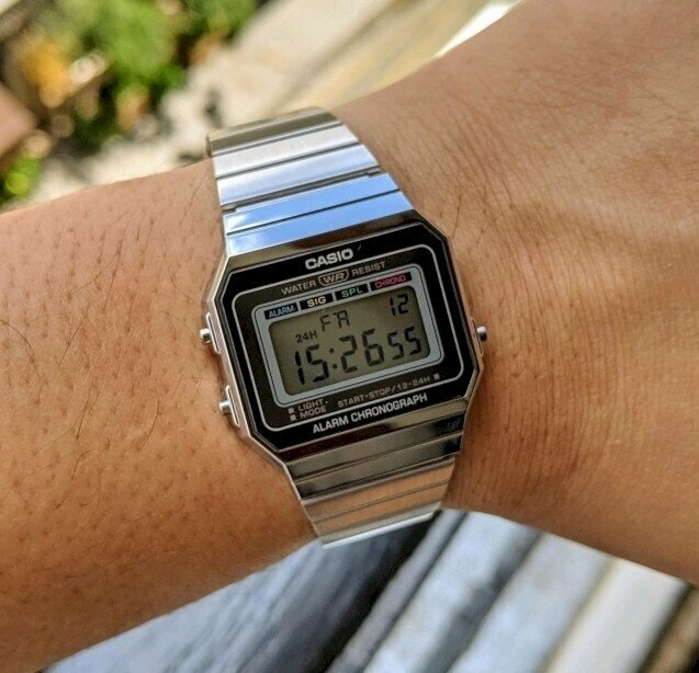 Подскажите какие нибудь часы с синей люминесцентной подсветкой как у Casio W-740-1V, которые в моем мухосранске я нигде не могу достать и на озоне и вб их нет. Сам я ношу Casio DW-290-1V, но у них подсветка цвета морской волны, почти зеленая, хотя все зависит от окружающего освещения, на фотографиях она выглядит как вполне себе голубая. Есть конечно Casio Illuminator F-105W-1A модель с синей подсветкой, но они слишком маленькие, я хочу чтобы часы были размером не меньше чем Casio Illuminator W-800H-1A, но такая модель вся с зеленой подсветкой. Вообще странно что большинство чкасио с подсветкой оранжевой либо зеленой