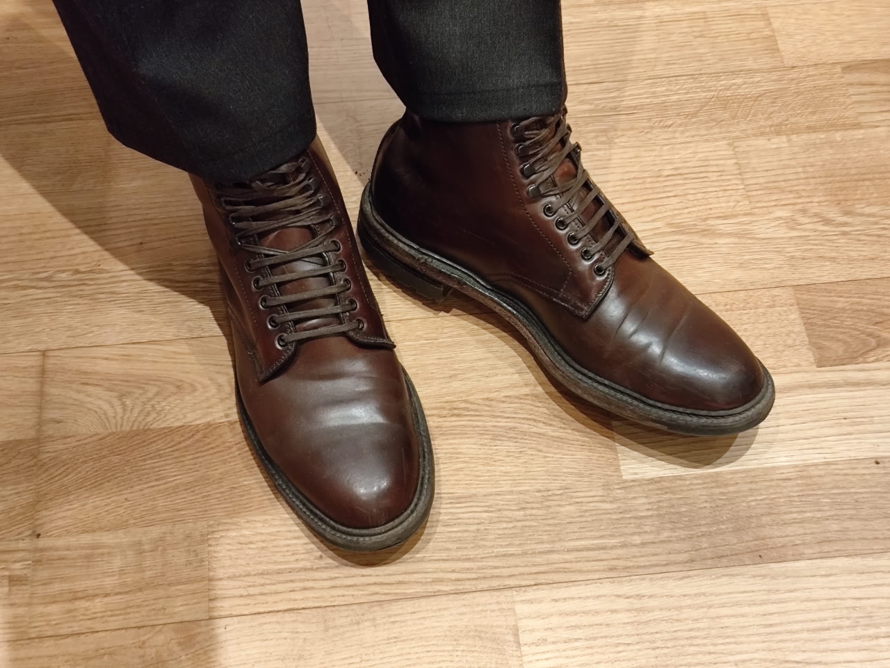 >>1950674 > именно так выглядит обувь, которую носят на улице. Это не дресс, который должен выглядеть как только что с магазинной полки. Справедливости ради могу только отметить, что эта кожа имеет не самое красивое старение.