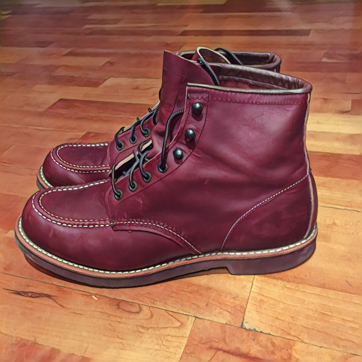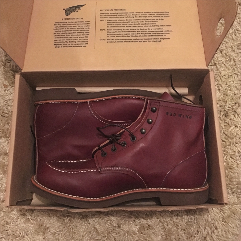 >>1950747 Итак, получил я наконец-то свои бекманы в том же самом размере 10, цвет Cigar, factory seconds с Сиерры через посредника (я сейчас смотрю, там и дешевле есть, и на berkeley supply цены тоже ниже, но похуй уже). По впечатлениям: немного шире в пучках, кожа гораздо жестче, сами как будто бы чуть-чуть длиннее, но вообще размер мой, любой другой не подошел бы, расстояние между берцами гораздо больше, можно прямо до одури их затянуть, если есть желание, и запас останется. Даже на моей тощей ноге между берцами сантиметра полтора остаётся, но кожа в будущем растянется, вероятно. В целом ощущаются как будто бы слегка более эргономичные. Из дефектов небольшая царапина на одном ботинке ближе к носу, ерунда.