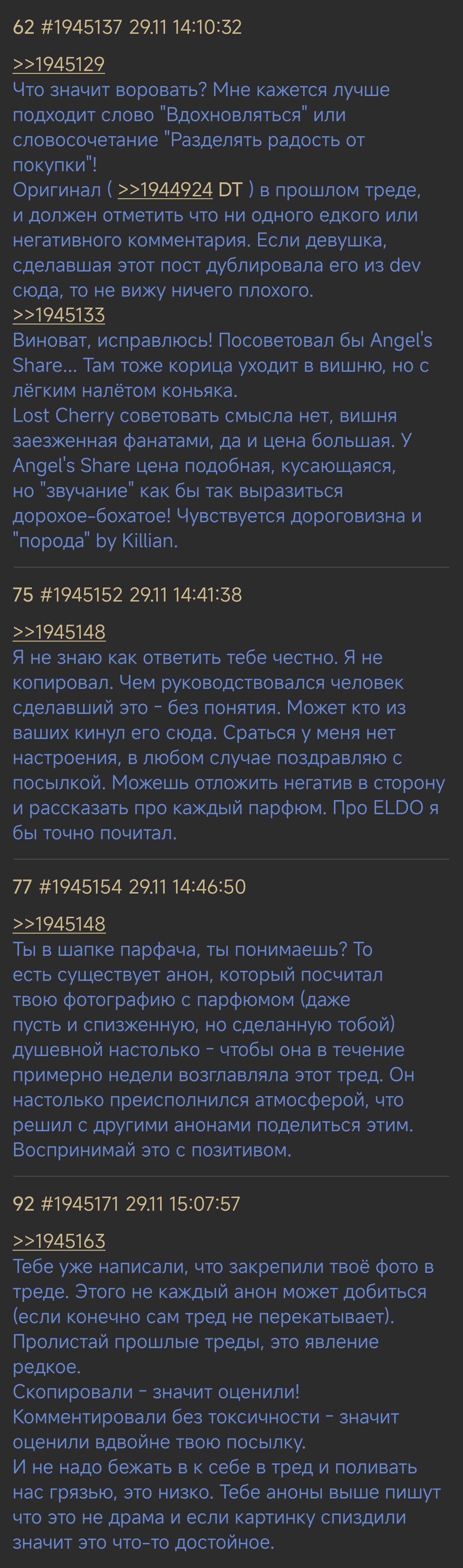 >>1946584 Это я, мэн, легенда треда, так сказать. Человек, на котором последние три года тут держится все общение. А так мне еще много есть что рассказать по теме, я еще десятки ароматов перепробовал. И, разумеется, попал в множество чадных историй ирл. Может, расскажу как-нибудь. Но не сейчас. Не настроен я пока на рассказы.
