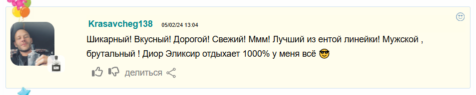 Sauvage Elixir Dior - для тян бее/фи/ но ещё не фу, резко бьет в нос перцем, душит, и вообще "дедовский аромат", а для меня же приятный рабочий запах, сходить в магазин или по делам, но у меня нос раздроченный так что мне ничего в мире не "бьет". Его наношу в основном на одежду и куртку, что бы всем на улице вьебало.