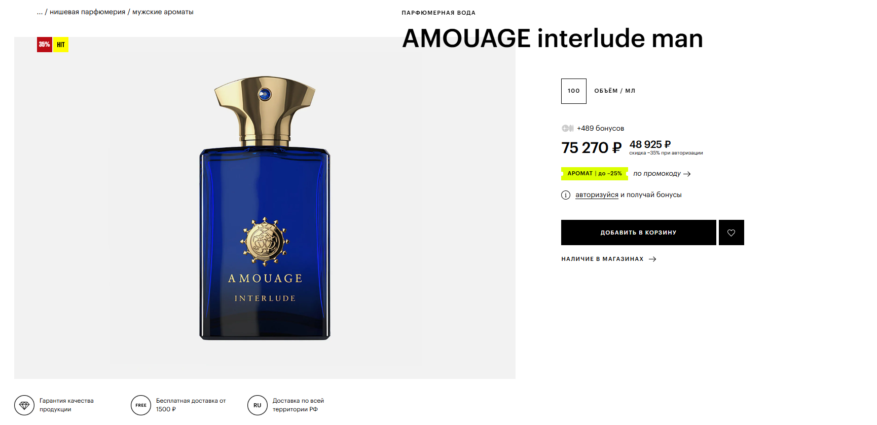 >>1950590 На рандеву пали нет, это больные фантазии местных больных на голову шизов. Цена в 18к это достойная цена для Interlude, и тут не надо искать подвоха. Взять какой-нибудь Encre Noire за 3к на рандеву и за 6к в летуале. Разница в 2 раза. Ну это люкс, хуй с ним. Брём тот же летуаль... Creed Absolu Aventus - 67 977 р, на рандеву 47 696 (с учётом 10% промокода ещё меньше), тестер вообще в районе 31 тысячи выходит. Ценообразование это сумбурная штука, тем более перед новогодними праздниками.