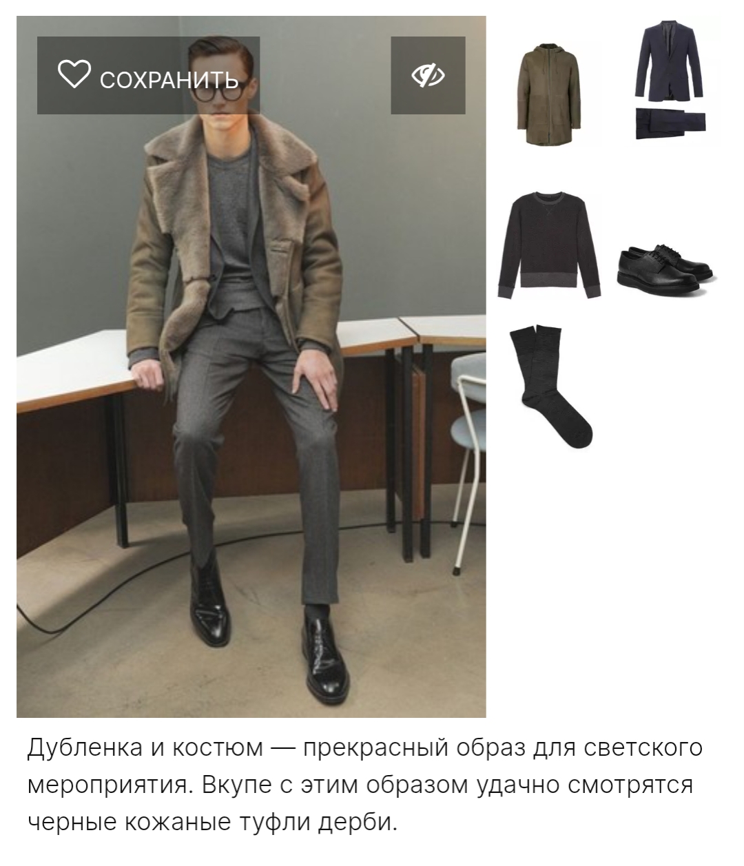 >Затем чтобы не мерзнуть на улице, очевидно же Чтоб не мерзнуть на улице одеваются по погоде. Понимаешь? По погоде. Не в классику. Очевидно. Ну или поясни все таки что за работа такая куда только в тулупе и оксфордах пускают, которые само собой тебя ждут в офисе, чтоб переобуться.
