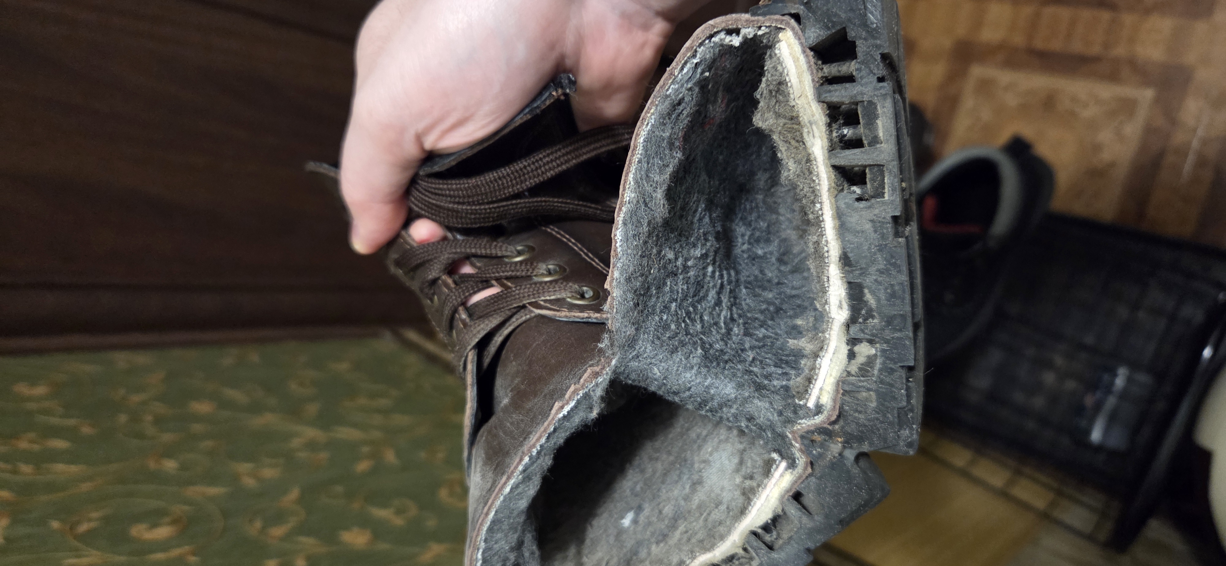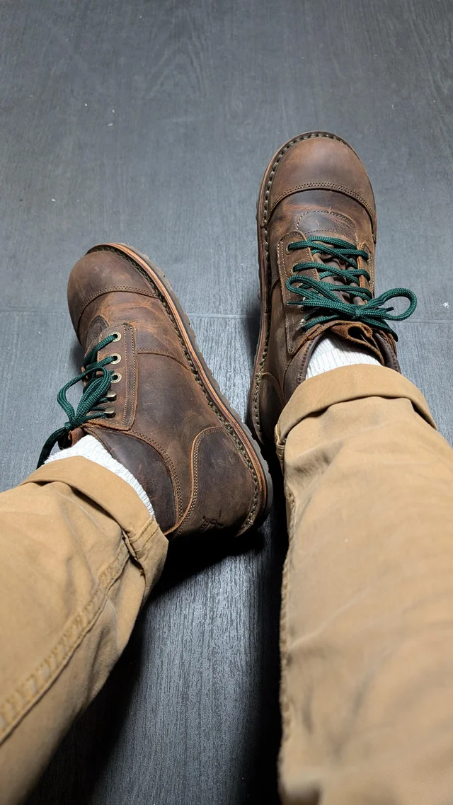 >>1953292 → Конкретно в этих 6 инч премиум есть внутри какой-то утеплитель, вон на фото какая-то хрень вроде мешковины. Поэтому в -10 в них не холодно даже в обычном не очень теплом носке. В -15-20, я думаю, уже холодно будет. В помещении нормально в них, но при температуре выше +10 на улице тоже жарко будет. Влагу они совершенно не впитывают,но подозреваю, они с завода просто пропитаны чем-то. Я дополнительно купил крема-воска прозрачного от сапфира, но и без него норм было. В планге практичности выглядит все так, что ходить будут очень долго. Даже разносились и теперь нигде не трут и не давят. Но все равно есть ощущение дубовой кожаной обуви. Какого-то кросовочного суперкомфорта тут точно не жди.