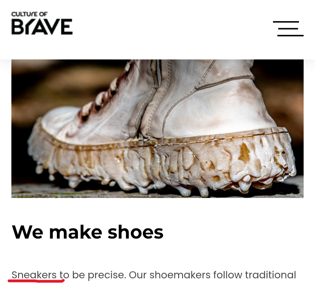 >>1959615 Тут речь еще о том, что когда > Суешь ногу в epic ботинок марки «икона обувача красное крыло наследие сталь купол хороший год» и чувствуешь дискомфорт - тоже слать эту обувь нахуй, не боясь быть осмеянным. Доверять своему сердцу, а не трендам, короче.