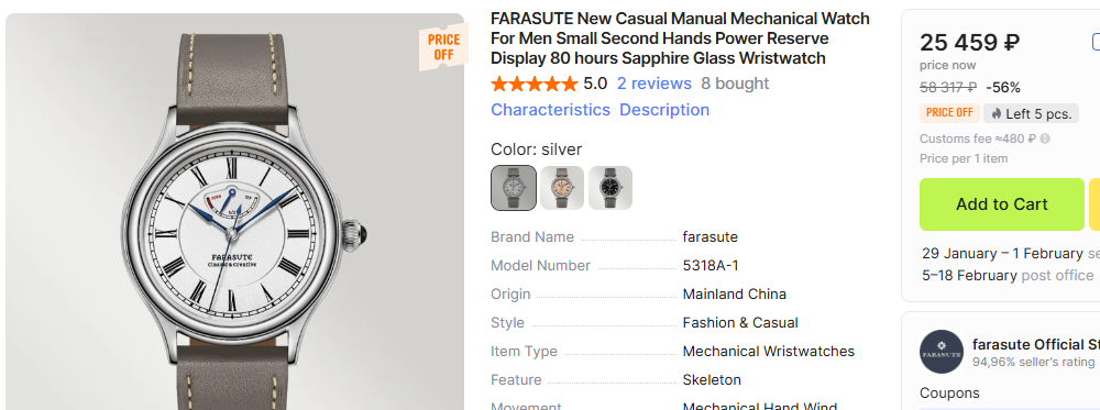 Q: А можно как-то обойти эту пошлину? A: Теоретически можно, указав на отправлении другую цену. Но жомашоп, например, тебя пошлет куда подальше с этими просьбами. На это есть несколько причин. Во-первых, при оформлении товара на таможне у таможенников могут возникнуть вопросы по поводу Реальной стоимости часов и тебе придется ссылаться на какую-то страницу в интернет-магазинах с той ценой, которую ты указал. А если они не проверят, то влепят тебе цену из московского магазина, так тебе ещё с нее пошлину придется платить. Во-вторых, при утере товара возместят тебе только то, что указано на коробке, а указано там будет мало. Короче не надо в этих случаях скупиться. Все равно ты приобретаешь часы дешевле, чем в местных магазинах.