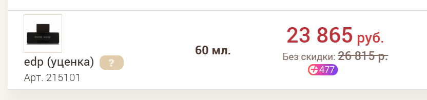 >>1957143 (OP) пик 1. Пахнешь красавчиком мужчиной за 2800, но все думают, что дороже. Шикарный. Пик 2. Оттрахав тян и оставив у нее свою рубашку на постирать бывает всякое, она ее не стирает, а нюхает и мастурбирует. Сейчас около 10 к. Все остальноу ХУИТА. Или дорого, или для ебанутых, или не стойкое.