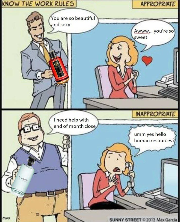 Вот с парфюмом как с порнухой, сначала ты смотришь всякие ванильные студии типа Браззерс, потом начинаешь поглядывать домашку, потом переходишь на мохнатки, жирух, генгбэнги, куколды. Так и с парфюмом, со временем тебе уже не не итересно носить авентусы и блюдешанели, ты хочешь носить жопу арабского верблюда политую соляркой. Но если порно ты лампово смотришь дома, то жопу верблюда носишь в том числе в люди.
