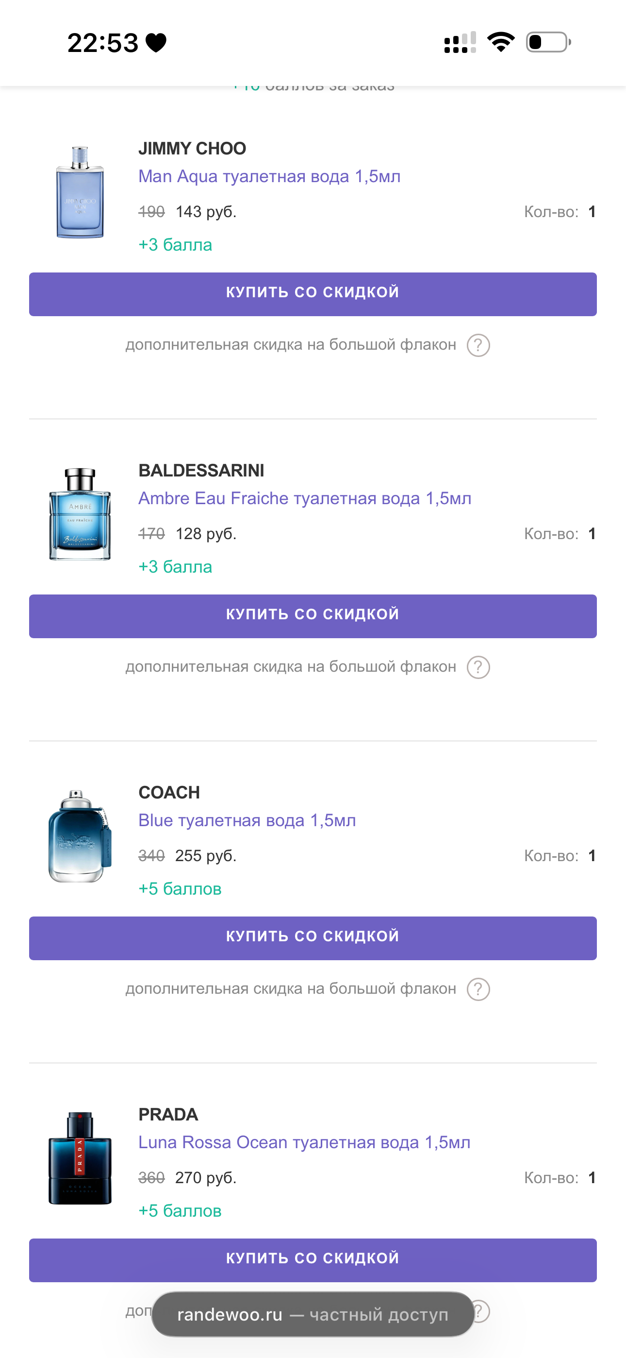 >>1957521 > тут мох в пирамиде, его запретила ифра Не мох запретили, а соединение, которое раньше отвечало за его запах. Сейчас запах мха просто переделали другими химикатами. > что феррагамо стоит копейки в летуале Ничего подобного, там сейчас все дорого. Но у них до сих пор случаются проебки и глюки сайта, буквально позавчера была акция - второй парфюм в подарок и сначала она была доступна онлайн. Берешь самый дешевый товар из списка акции и второй парфюм был бесплатно. Но там конечно многим поотменяли, но есть кто забрал. Я лично проспал эту акцию, она с утра была. Когда летуалевские очнулись и выпилили эту акцию с сайта (только офлайн теперь и так с дезиком не получится), у них уже бешеные мамки выгребли кучу всего по всей рф. Мегамаркет внезапно давал очень хорошие цены, но только в Нижнем https://www.pepper.ru/deals/rasprodazha-parfyumerii-megamarket-nn-parfyumernaya-651887 Следите за акциями, друзья.